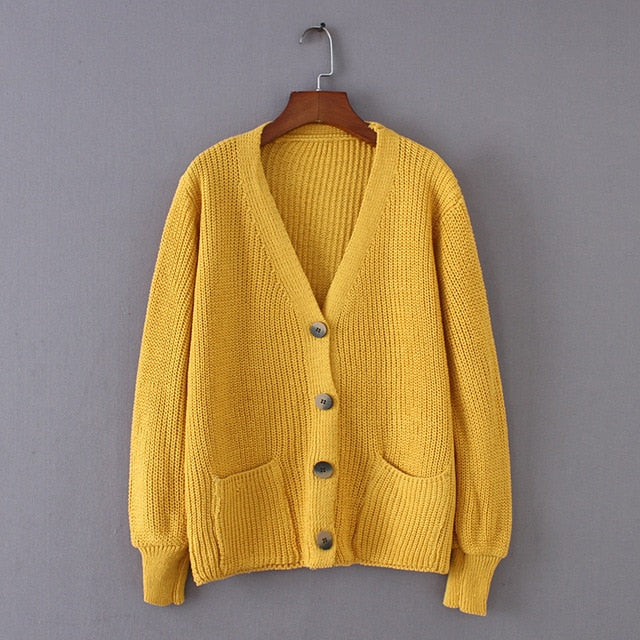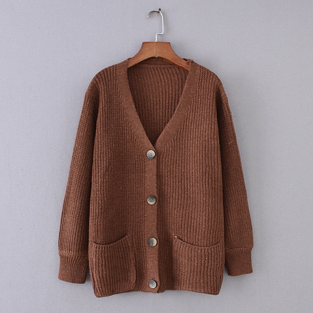 • Load image into Gallery viewer, Flectit Cozy Ribbed Knit Cardigan Women V-neck Front Pocket Button Down Dropped Long Sleeve Korean Casual Chic Winter Tops *